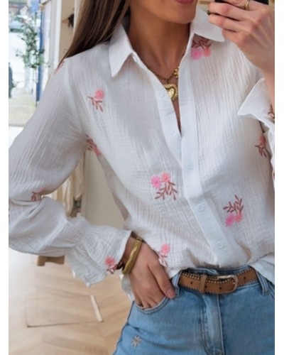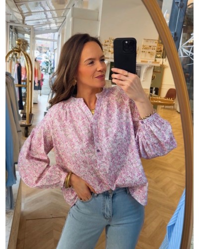Nouveau Quick view Supprimer du panier Liste de souhaits Comparer CHEMISE ELSA Prix 29,99 € - Chemise blanche - Matière gaz de coton - Bouton sur le devant - Motif fleur couleur rose - S/M=36/38 - M/L=38/40 - 100% coton Chariot