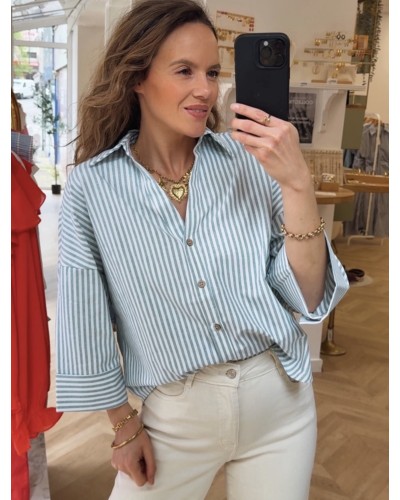 Quick view Supprimer du panier Liste de souhaits Comparer CHEMISE ORIANE Prix 36,90 € - Blouse à rayure - Boutou sur le devant - Pince sur le devant - Col haut - Elastique aux manches - S=36, M=38, L+40, XL=42 - 100%... Chariot