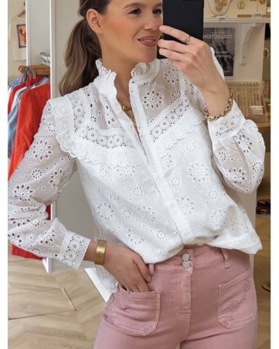 Nouveau Quick view Supprimer du panier Liste de souhaits Comparer BLOUSE JULIA Prix 42,90 € - Blouse blanche - Broderie blanche - Bouton sur le devant - Col rond - S=36, M=38, L=40 - Doublure sur le devant - 100% coton Chariot