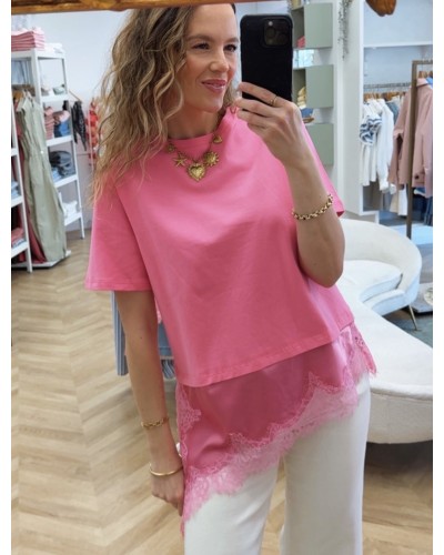 Nouveau Quick view Supprimer du panier Liste de souhaits Comparer TEESHIRT TENDNACE Prix 29,99 € - Tesshirt loose - Manche courte - Col rond - Dentelle en bas - Asymétrique - S/M=36/38 - M/L=38/40 - 95% coton - 5% élasthanne Chariot
