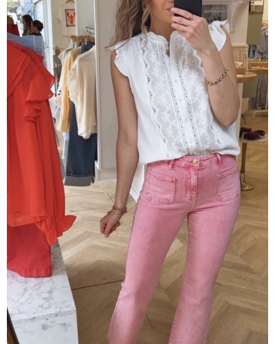 Nouveau Quick view Supprimer du panier Liste de souhaits Comparer TOP LILA Prix 34,90 € - Top en gaz de coton - Sans manche - Froufrou au manche - Bouton sur le devant - Dentelle - Col rond - Existe en : blanc, bleu... Chariot